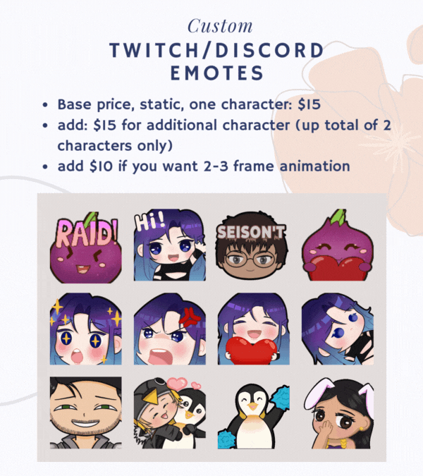 Digital Illustrations, Stream Overlays, twitch panels, Emotes
